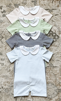Striped Boys Peter-Pan Collared Romper - 18 / Navy